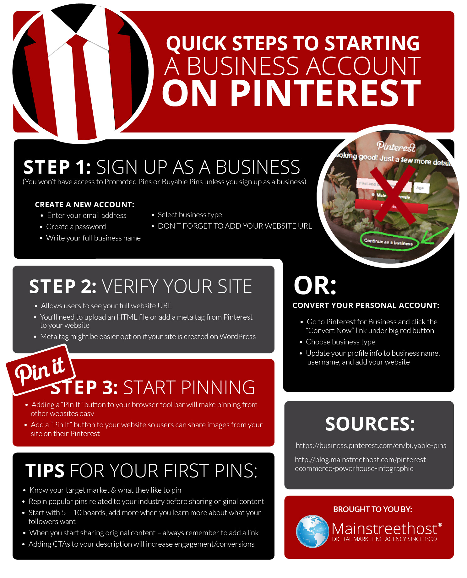 Whether you’re new to Pinterest, or have become familiar with the platform through your personal account, getting your business started on Pinterest is quick and easy. Just follow these steps and you’ll be addicted to pinning for your business in no time!