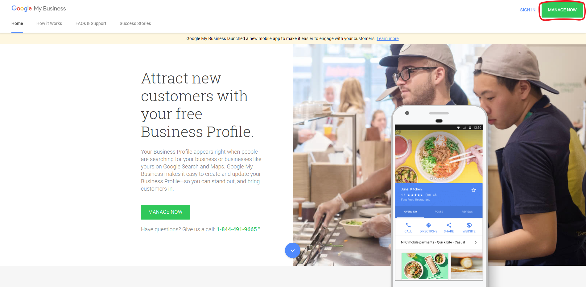 Navigate to https://www.google.com/business/ and select the “Manage Now” button in the top right corner.
