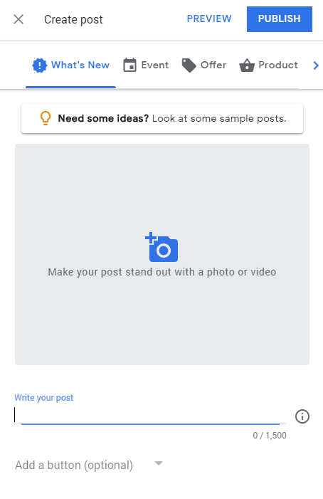 Currently, there are four types of Google Posts that can be created.