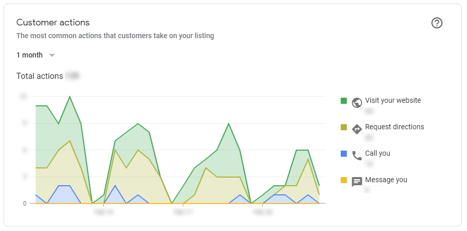 The helpful graph shows how customers behaved after finding your business listing. The tracked actions include.