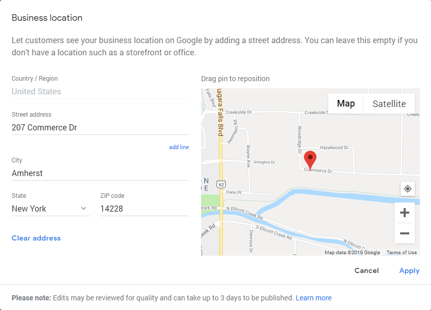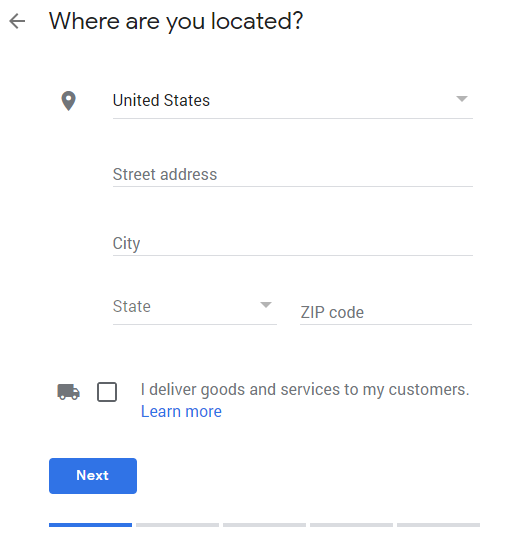 Note: Google recommends leaving the address field blank and only entering your service area if you do not serve customers at your business address.