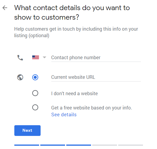 Enter your phone number and website.